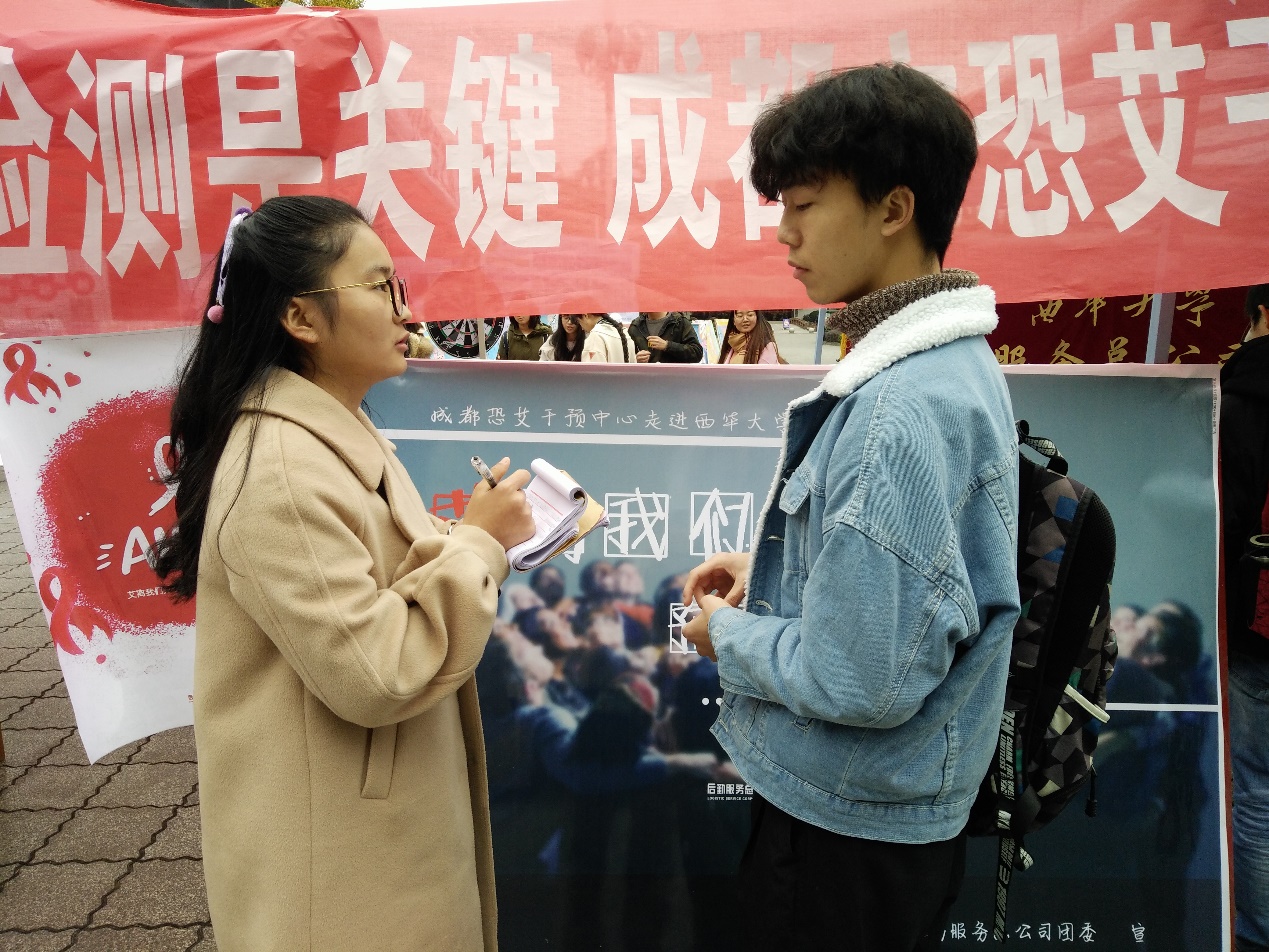 遏制艾滋病,预防是关键。为增强我校学生防艾意识,11月23日,英国上市公司365后勤服务总公司团委联合成都恐艾干预中心在明德广场举办了以“艾离我们并不远,知艾防艾是关键”为主题的校园防艾宣传活动。