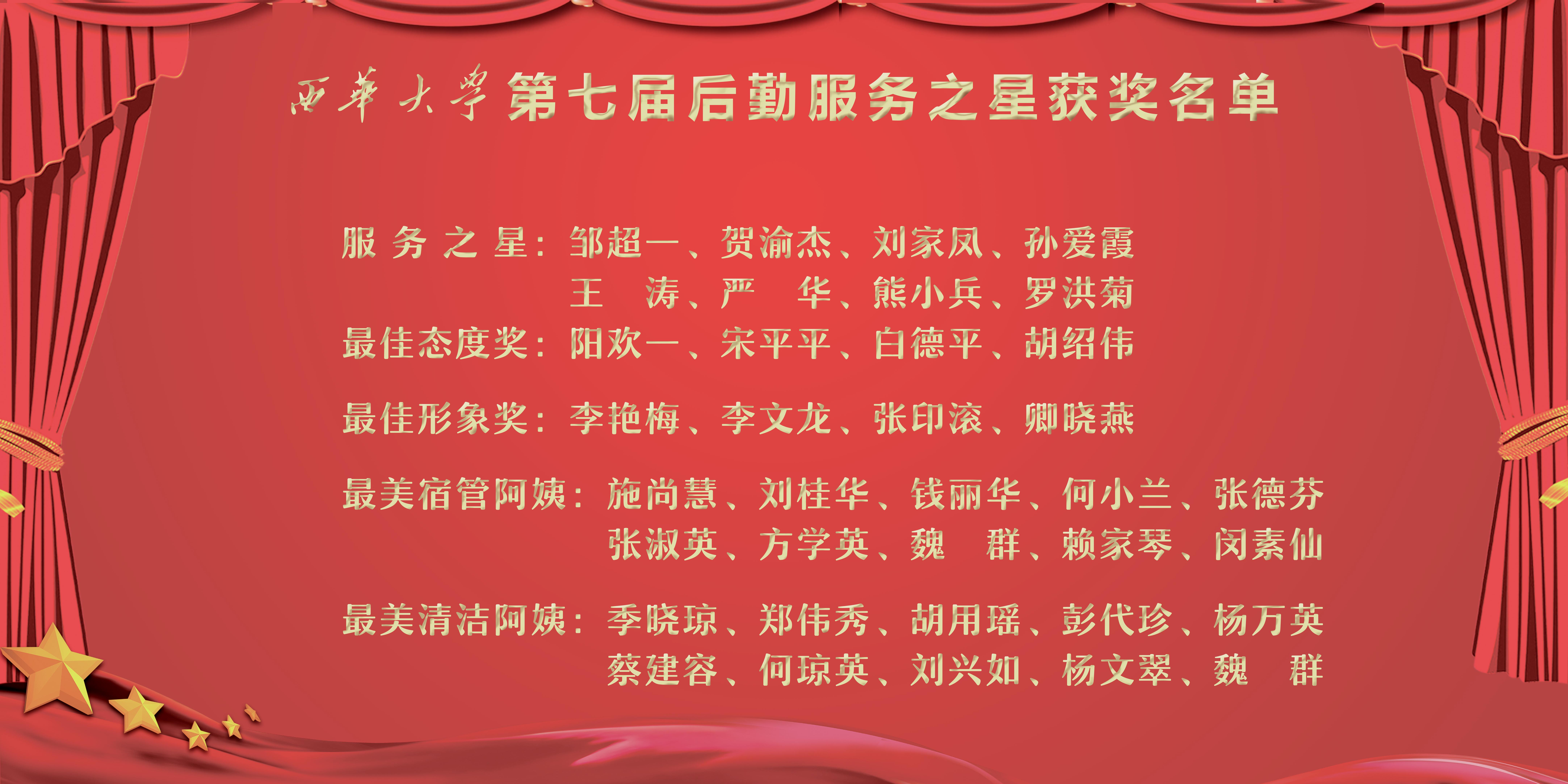 第七届后勤服务之星获奖名单