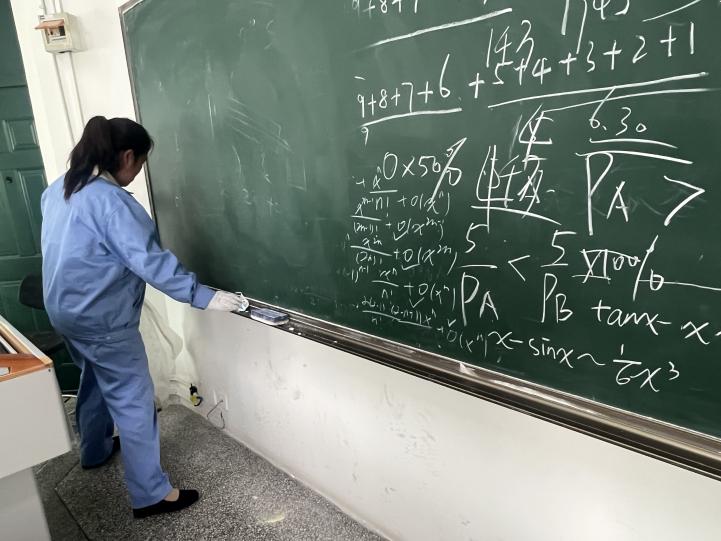 在检查过程中,针对各教学楼多媒体讲台、黑板、厕所卫生进行了重点检查,要求保洁人员均需按照中心保洁工作流程及制度严格执行和落实,并当即对不符合要求的卫生情况提出整改建议,鼓励员工严格按照高要求、高标准开展工作,保障师生学习、工作环境干净整洁,教学工作正常有序进行。