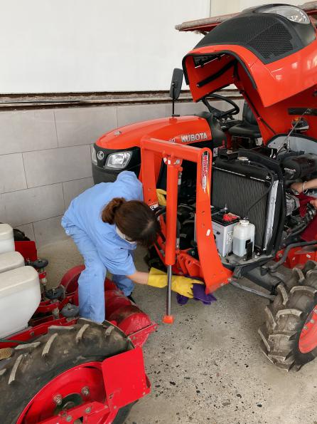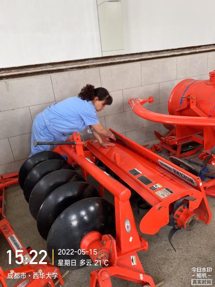 保洁人员正在擦拭农机设备