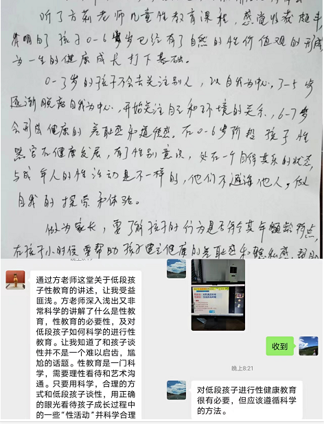 本次讲座引起了家长们的热烈反响,不仅引导家长打开了幼儿性教育的大门,还让家长对如何正确进行幼儿性教育有了充分认识。家长们一致认为,高度重视孩子的性教育势在必行,抛开传统的思想枷锁,及早普及正确的性观念和科学的生理知识,教会他们学会保护自己隐私部位,防止性伤害。相信有了家长的支持与配合,孩子们能掌握到相关的性教育知识,学会一些自我保护的技能,促进他们更加茁壮地成长。(高冰撰稿)