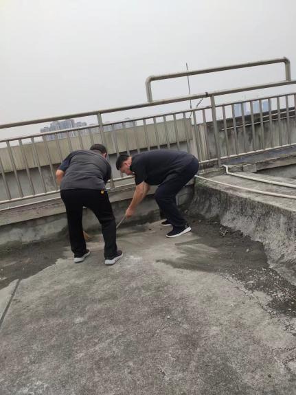 楼顶堆积的尘土、杂草、杂物会导致雨季雨水排放不畅,造成屋顶渗水漏水和墙皮脱落,不仅影响房屋的安全性和美观度,而且影响师生正常教学科研工作。针对楼宇众多、屋面情况各异,部分楼宇没有上下屋顶楼梯的情况,物业中心员工们积极想办法克服困难,在确保安全的前提下通过各种方法前往楼顶进行清理。在清理过程中,大家分工合作,或是用扫帚扫起沉积的枯草落叶,或是用耙子抓起断裂的枯枝,或是赤手捡起塑料袋、石块、砖头等杂物垃圾,或是借助铲子、铁锹等工具清理排水口淤泥,有些角落使用不了清洁工具就徒手上。在两次的专项清理工作中,大家充分发挥了“撸起袖子加油干”“不怕苦、不怕累、不怕脏”的实干精神,将屋顶上的杂草、淤泥、杂物等彻底清理干净,确保屋面排水畅通。