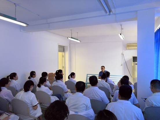 2018年8月30日校医院召开全体员工大会,会议由校医院院长谭建军同志主持。