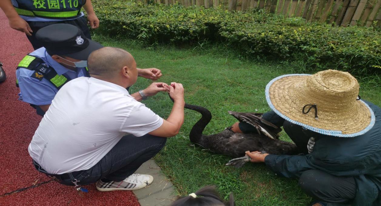 学校领导和老师们通过咨询兽医、线上查询等方式,详细了解受伤原因和医治方法,“黑天鹅的脚掌已局部破皮,应该是缺乏畜禽维生素造成的,可以通过聚维酮碘溶液消毒,复合维生素拌料等方式增强抗病性,对症下药。”大家经过讨论后,得出了一致意见。