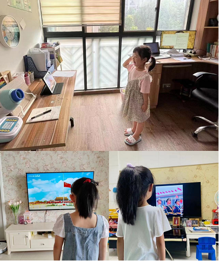 相约云端,隔着屏幕,我们聚在一起;迎着朝阳,伴着国歌,参加庄严地升旗仪式。雄壮的歌声,认真的态度是为了致敬伟大的祖国、致敬温暖的城市、致敬战斗的医生、致敬勇敢的人民。祖国母亲加油!疫情下的成都加油!我们一定能团结一心,共渡难关。