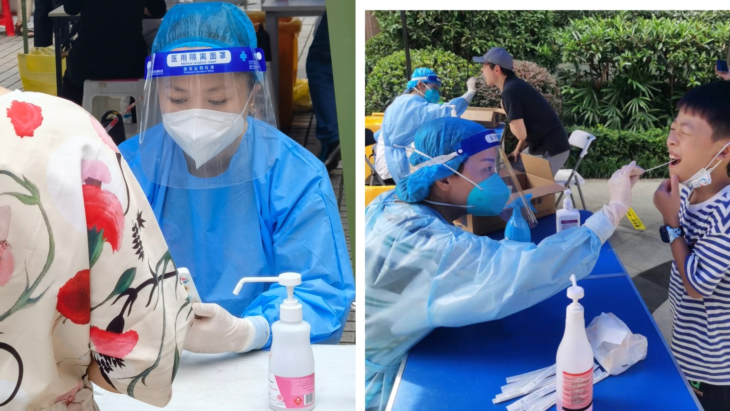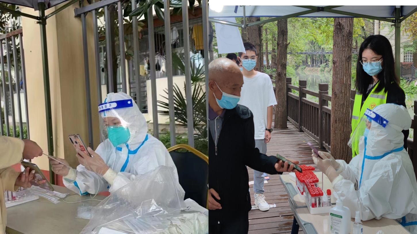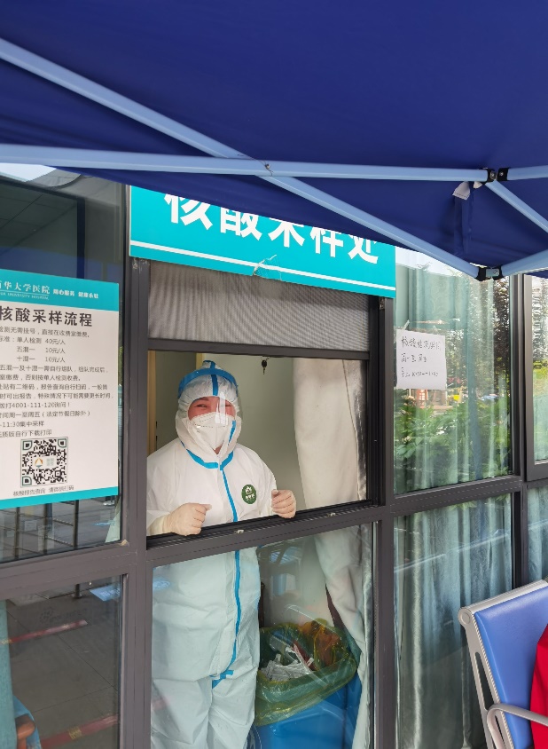 内科彭燕医生在青羊区清江社区参加核酸检测 骨伤科青年党员薛京蓉在高新区参加核酸检测