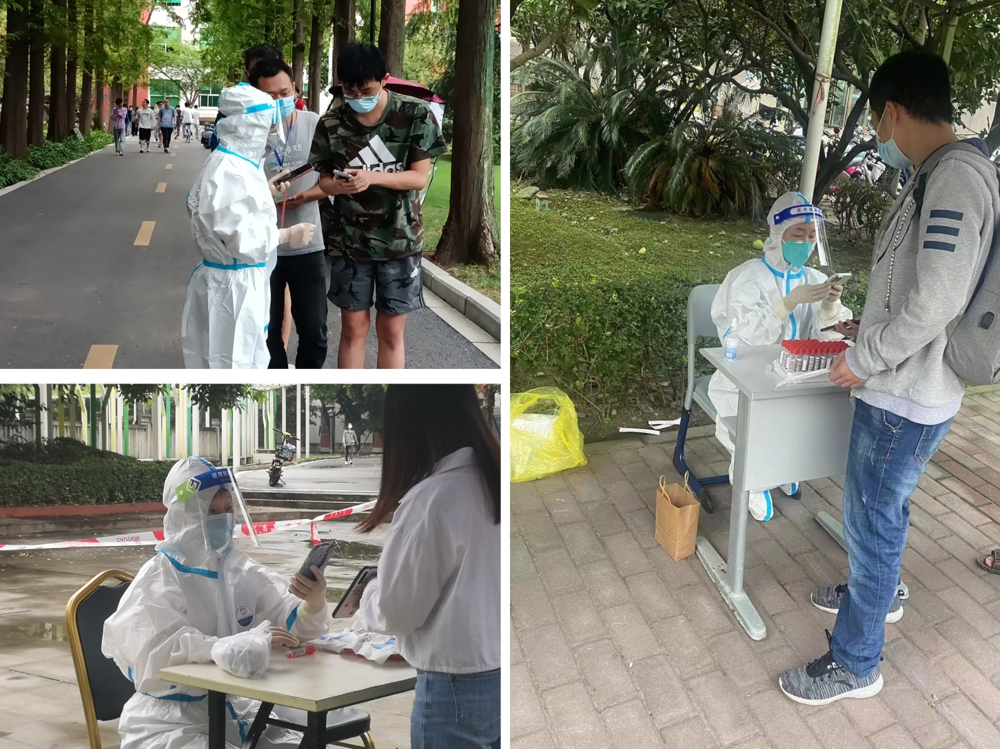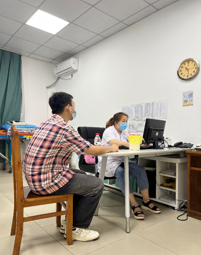 骨伤科黄超医生和皮肤科护士方艺瑶为师生核酸采样