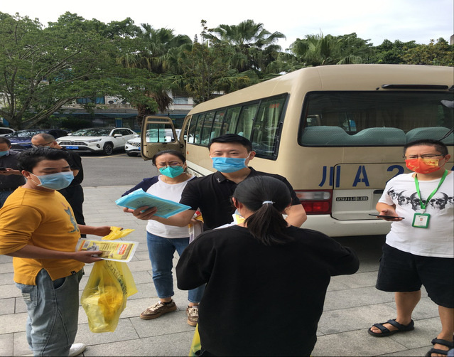 李红东副院长为志愿者分发核酸检测物资