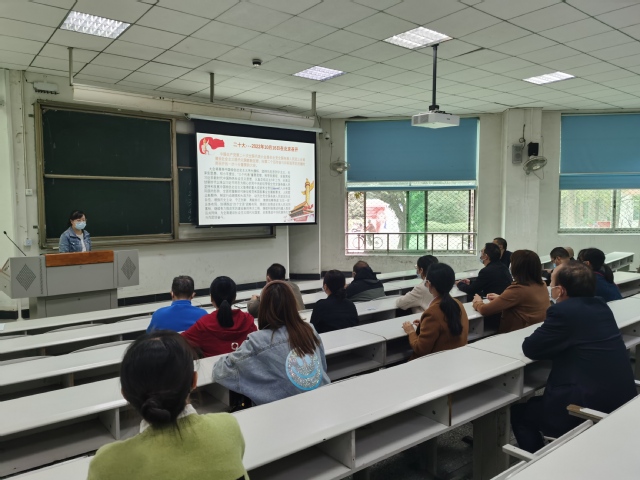 后勤服务总公司分工会六小组于2022年10月24日在第四教学楼A区107教室进行“永远跟党走、奋进新征程”工会主题文化活动,宣传、学习党的二十大精神。
