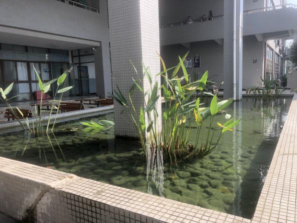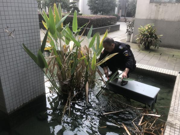 中心队员清理7教C区内庭鱼池水植杂草前后对比照