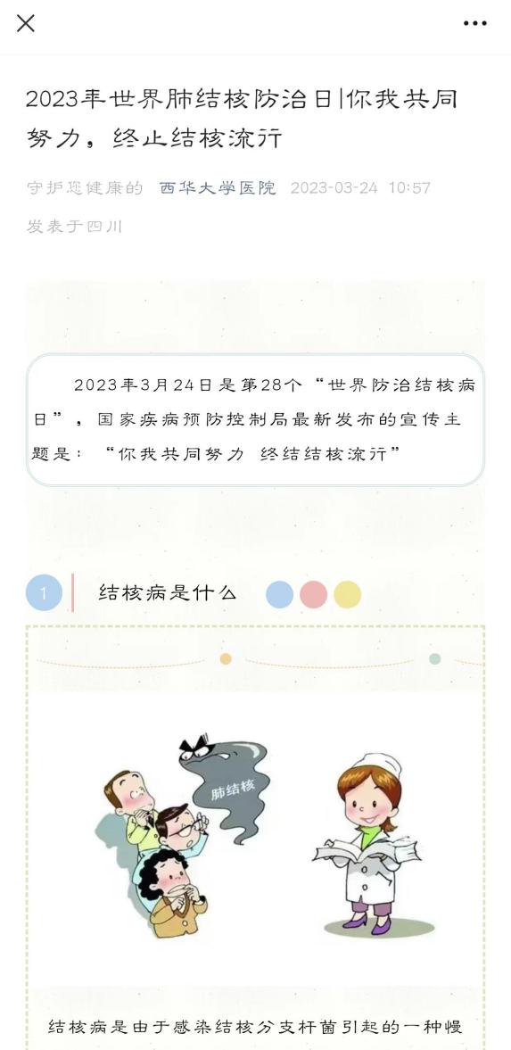 宣传日当天医院推出了以结核病防治为主题的微信公众号,并结合院内展板为广大患者进行结核病定义、表现、诊断方法、防控等知识宣传,使师生们更多的了解结核病,更好的做好自我防护。(李慧娟 撰稿)