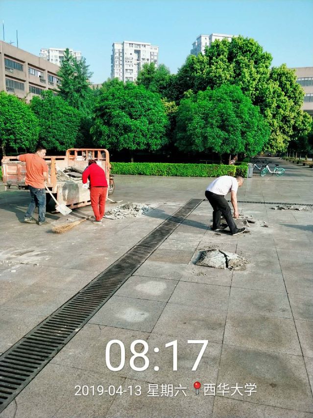水电管理服务中心全员出动,管道维修班、综合区电力维修班连续多天坚守岗位,对五教、六教周围的路灯和卓越广场喷泉头进行检修及更换。维修中心对卓越广场地砖进行了全面排查,修补了多处损坏严重的地砖及喷泉池内立面花岗石,清理了水泵池内淤泥,协助开辟沟槽,铺设电缆线路。绿化环卫服务中心对卓越广场进行校园环境卫生整治,彻底清洗喷泉池及周围路面,修剪花台绿篱及草坪,协助进行水泵池抽水作业。在活动当天,中心员工坚守岗位,积极配合节目组控制喷泉及其他现场工作。