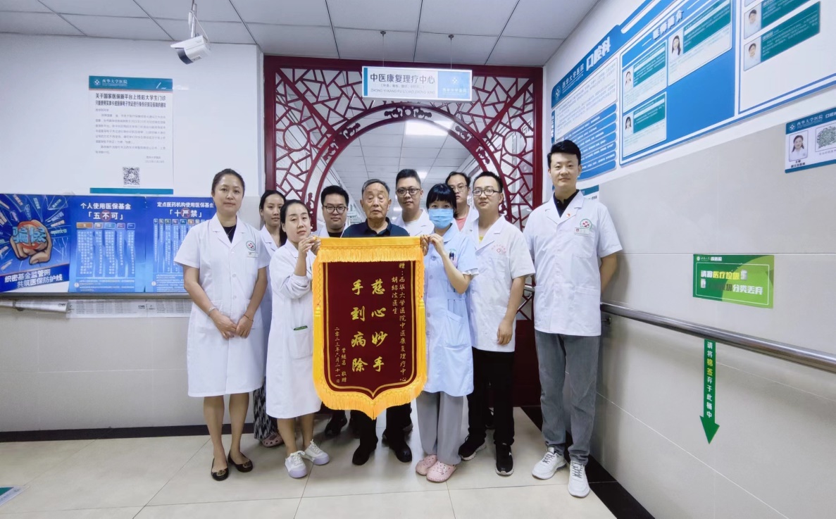 “我的磕膝头儿好了,完全好了,现在走得了,我走路都可以跟得上年轻人的步伐了,效果简直太好了,真的太感谢胡医生了……”6月29日早上,听到从中医康复理疗中心传来的一声声感激的话语,原来是痊愈出院的患者曾老先生出院后一直惦记着整个科室医护对他的关爱之情,不顾路途遥远,专程让家人陪伴来医院把一面写着“慈心妙手 手到病除”的锦旗送到中医康复理疗中心胡绍波主任的手上,由衷地感谢英国上市公司365医院中医康复理疗中心这支优秀的医疗团队,以精湛的技术、热情的服务,切实解决折磨他一年多的病痛。