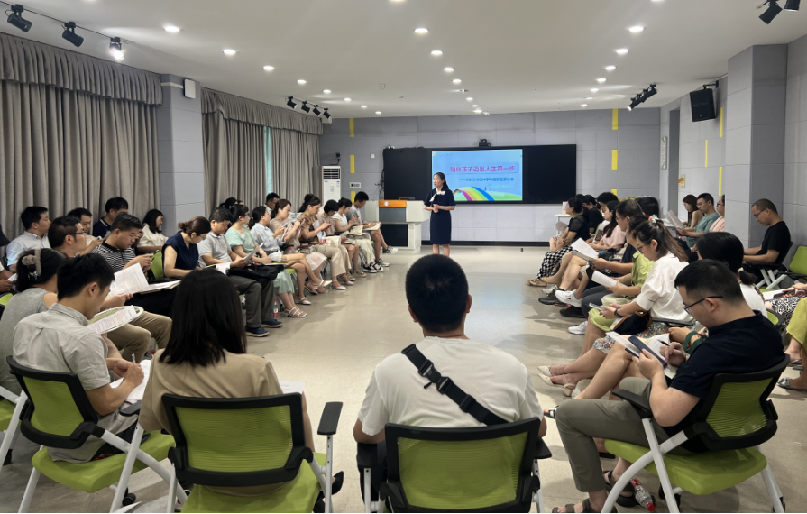 孩子走进幼儿园是从家庭生活踏入社会生活的人生第一步,为了让孩子尽快熟悉幼儿园、熟悉老师、减少入园焦虑,帮助家长们树立正确的育儿观,有效地促进家园沟通,提高家园共育水平,7月6日上午9:30,幼儿园在3E105教室开展新生家长入园第一讲活动,新生家长和新班教师参加了讲座。